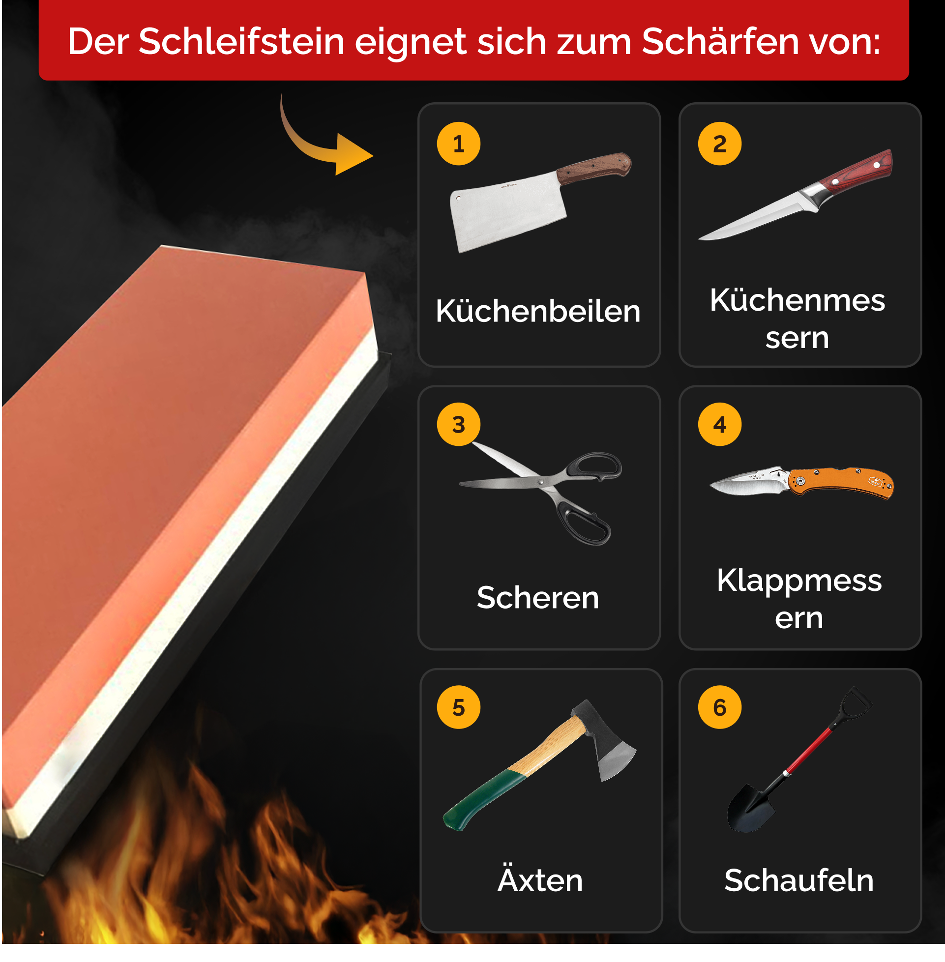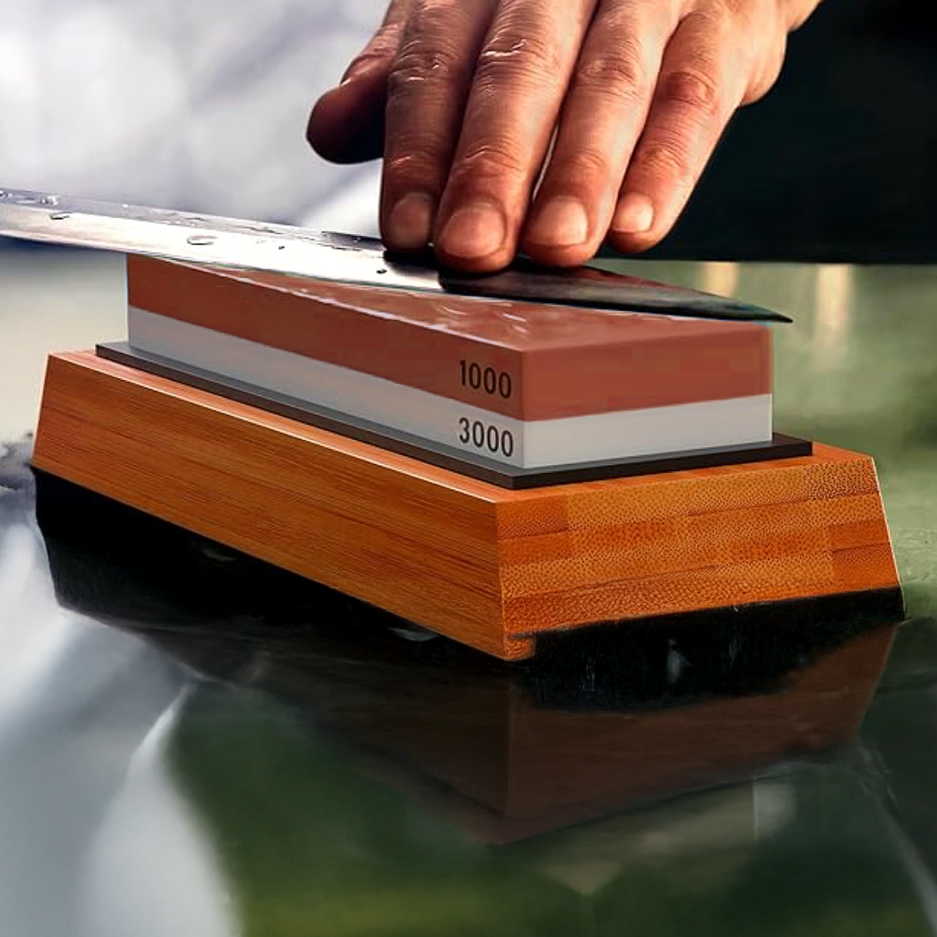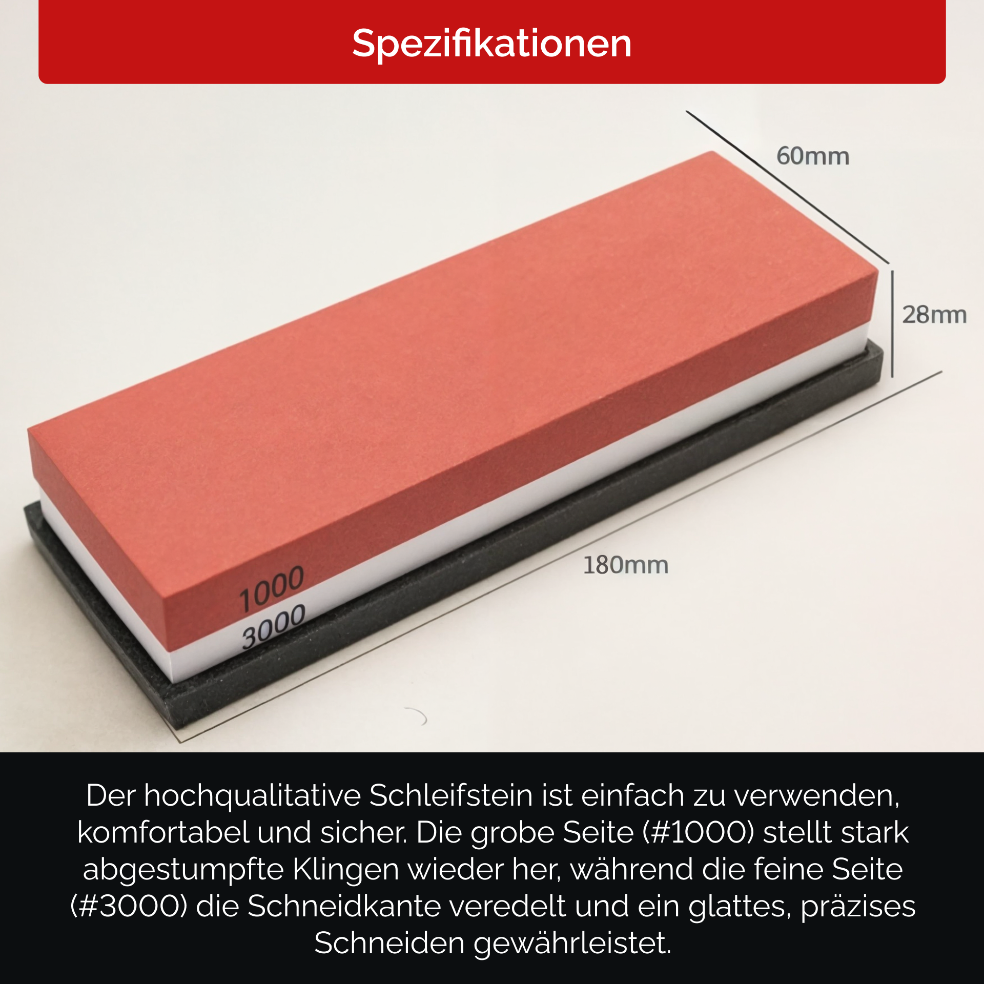 Die 1000‑Grit‑Seite formt die perfekte Schneide, die 3000‑Grit‑Seite poliert sie zur Vollendung – ohne Klingenverschleiß und ohne großen Kraftaufwand