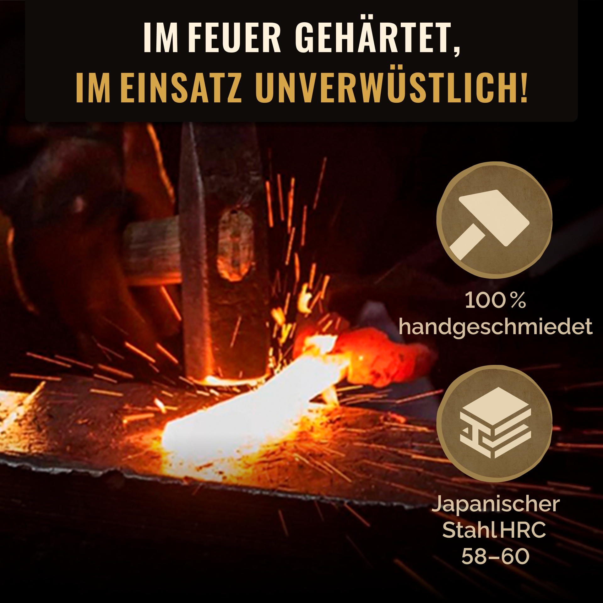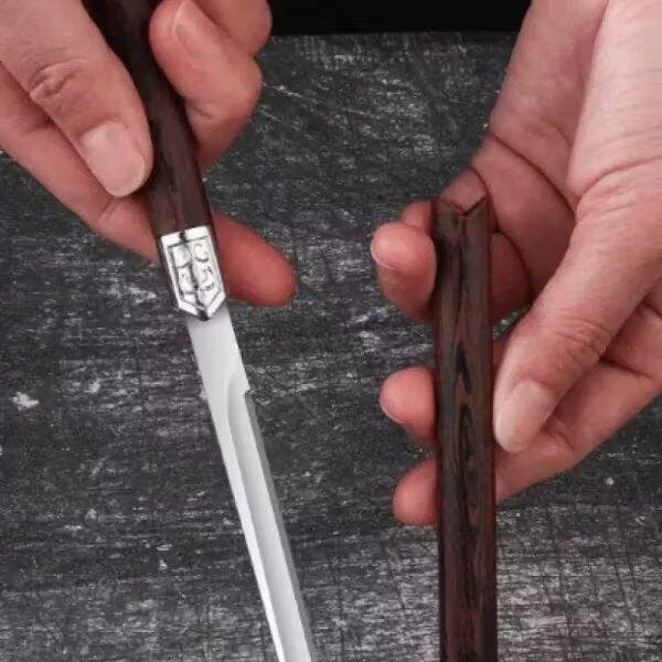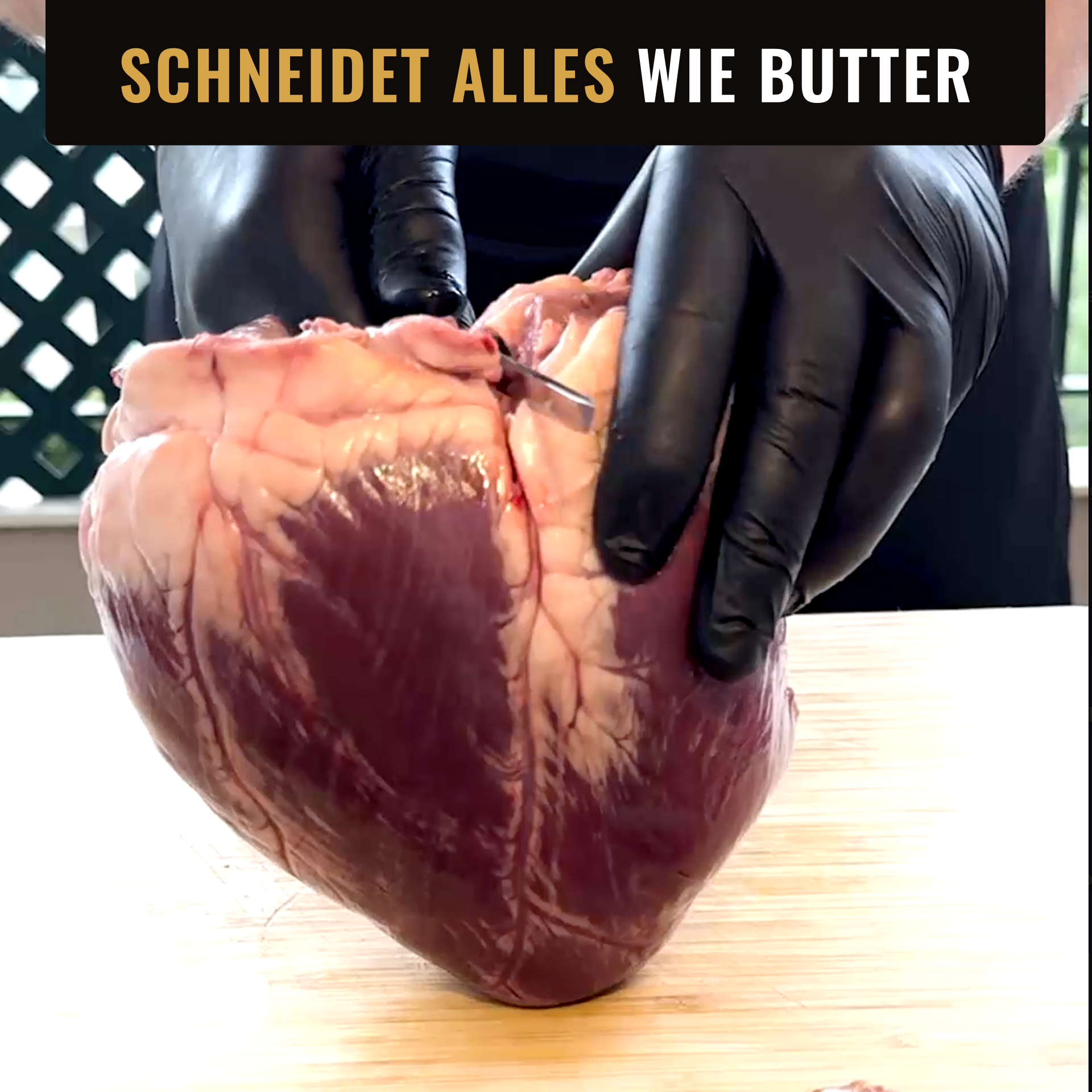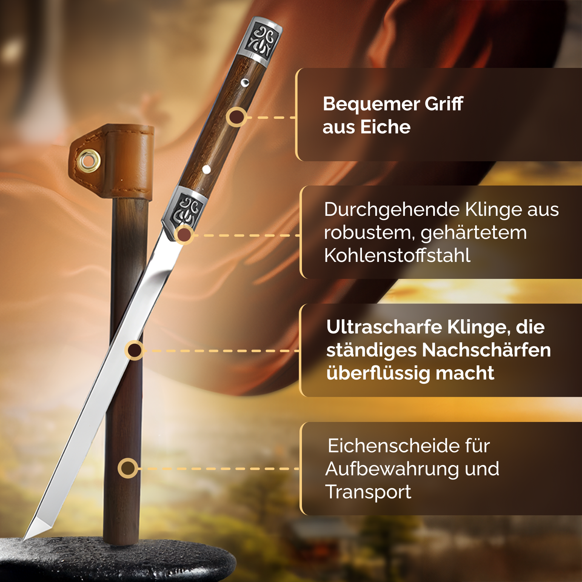 Scharf, ausgewogen, Griff und Scheide aus Holz – ein solides Messer